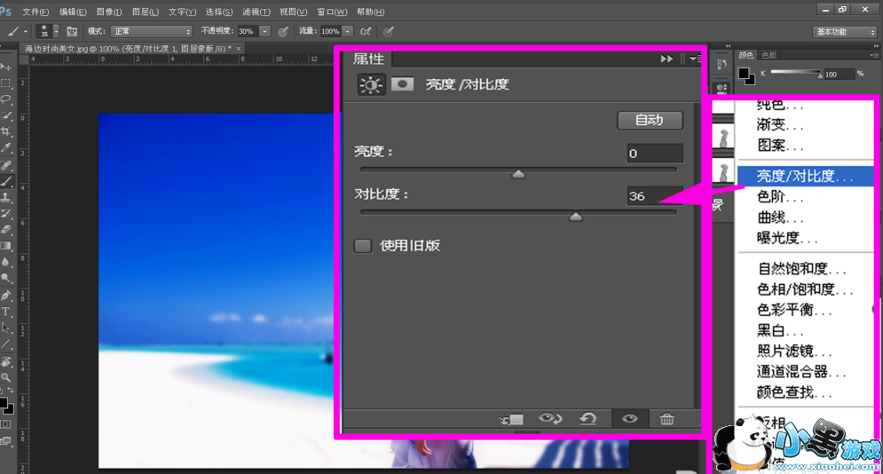 10、再点击创建新的填充或调整图层按钮,选择亮度/对比度 选项,设置合适参数,这样就完成了景深效果操作了。
