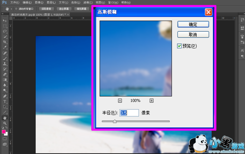 4、在弹出来的高斯模糊对话框中,根据实际效果,将半径参数进行适当调整,