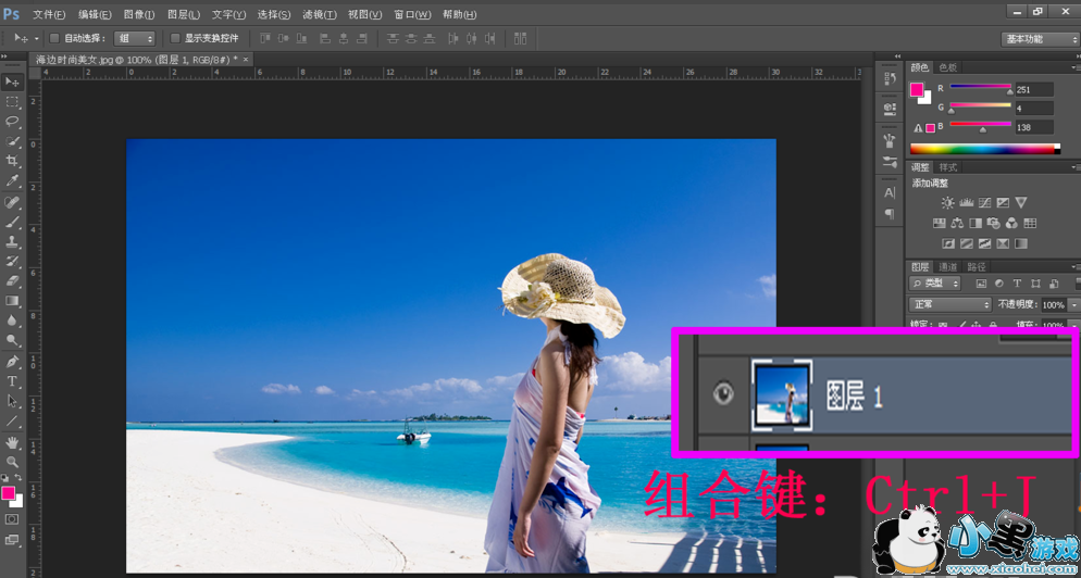 2、然后按快捷键Ctrl+J,复制背景图层,生成图层1,