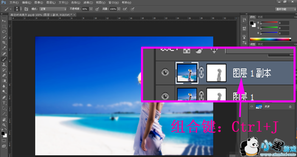 7、按快捷键Ctrl+J,复制图层1,生成图层1副本,