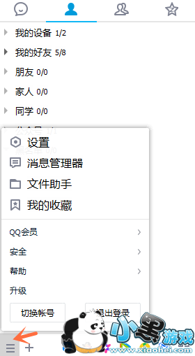 1、打开电脑QQ,点击主面板的菜单按钮,如图,