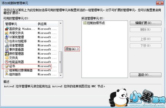第二:点击文件——添加删除管理单元,下拉选择:证书——添加