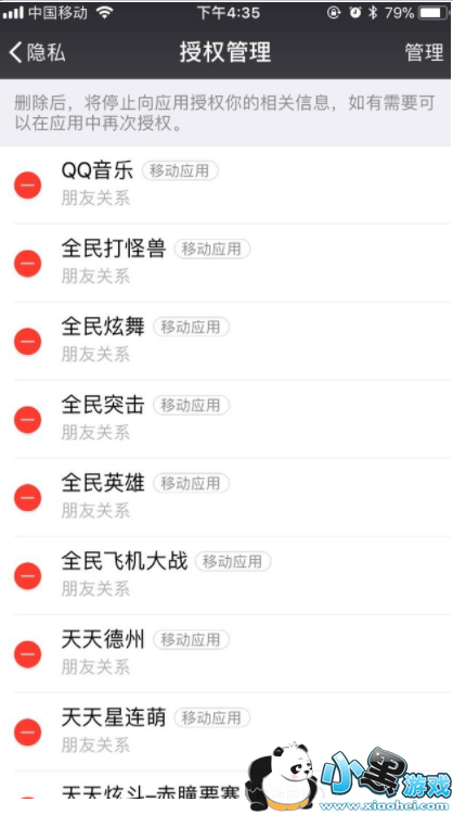 2、点击进入「授权管理」之后就可以看到微信授权的应用了。