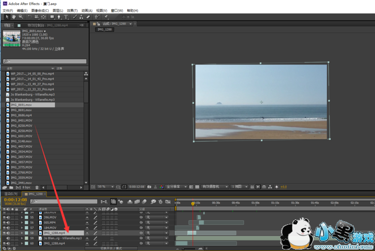 打开Adobe After Effects软件,导入视频,选中需要处理的视频片段,