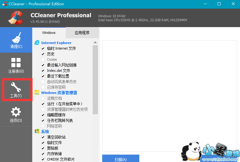 打开CCleaner软件,进入界面,点击左侧的“工具”选项,
