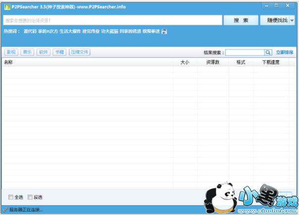 p2psearcher是广大老司机熟知的一款种子搜索神器,功能很强,可以帮做用户搜索软件、视频、电子书等资源。有小伙伴反映说,打开p2psearcher3.5绿色版搜索资源时,一直显示服务器正在连接,这是什么情况?怎么解决呢?
