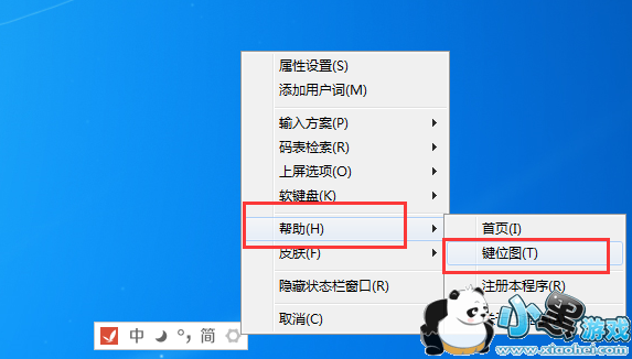 1、我们用快捷键“Ctrl+Shift”切换出精灵五笔输入法,在其状态栏上点击鼠标右键并找到“帮助”,接着在“帮助”中就可以看到“键位图”了;