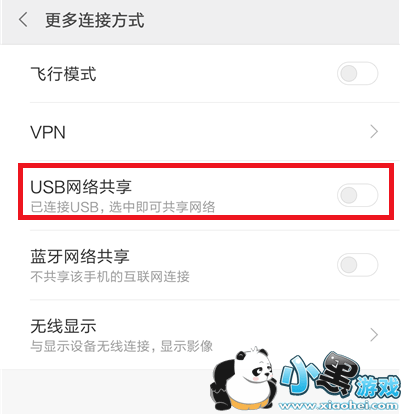 点击【更多连接方式】,弹出新页面,点击【USB共享网络】,将其勾选,