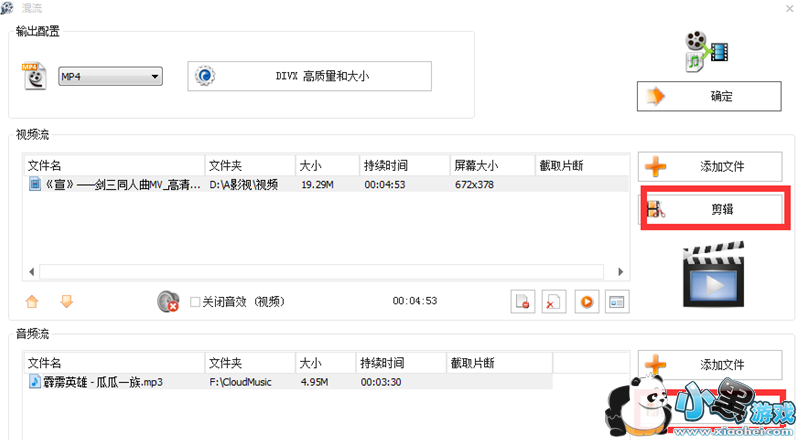 点击混流页面右侧的“剪辑”,将音频和视频剪辑成同等长度;