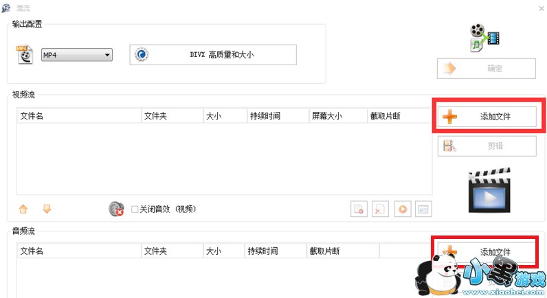在混流页面右侧点击“添加文件”,分别添加视频文件和音频文件;
