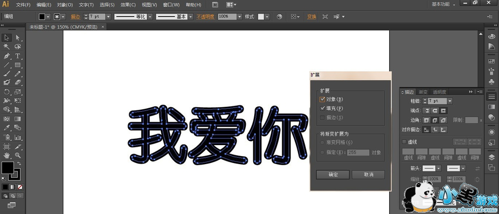选择菜单栏上的描边,设置描边大小为7PT,描边颜色为黑色,如图。