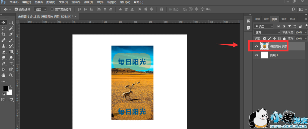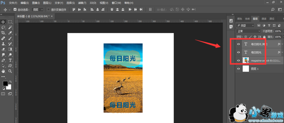 然后在文档中输入文字,现在已经有了两个图层,文字图层和图片图层,还可以再设置几个图层,