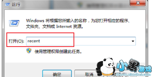 在电脑上按win+R键打开运行,输入recent,点击确定,如下图所示: