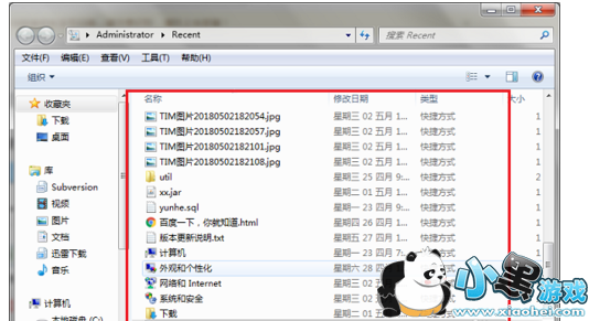 打开Recent之后,我们可以看到最近使用过的文件,包括图片、文档、文件夹、网页、其它快捷方式等,如下图所示: