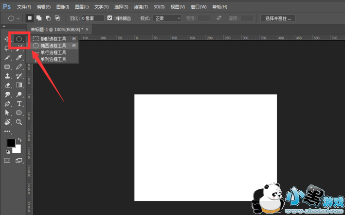 打开PS软件,选择了椭圆选框工具,