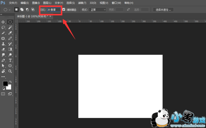 在属性栏中输入羽化值,数值越大羽化效果越明显,