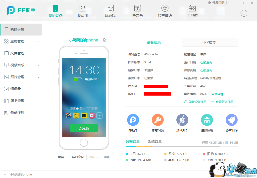 2.用户把手中的设备连接到电脑中。通过电脑版苹果软件管理客户端(以PP助手为例),找到文件—文件系统(越狱)—/var/mobile/Library/Caches/ 路径文件夹,把文件夹里面的com.apple.mobile.installation.plist和com.apple.LaunchServices-054.csstore两个文件删除,并重新启动苹果设备。(如果用户只找到两者中的其中一个文件,选择一个文件删除后重启即可。)
