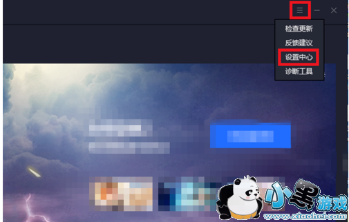 在电脑中打开腾讯手游助手,在页面右上角点击菜单按钮,再点击【设置中心】选项。