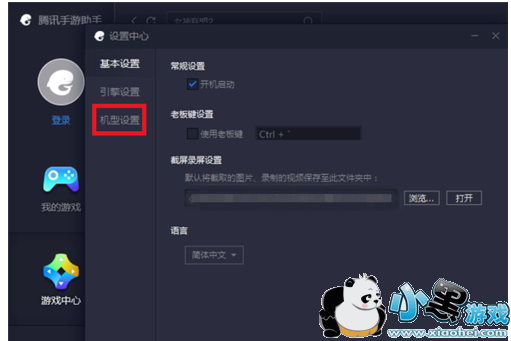 进入设置中心界面,在左侧的菜单中点击【机型设置】。