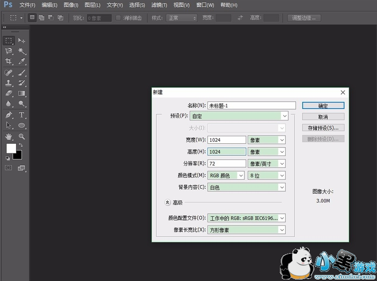 打开photoshop软件,新建一个1024*1024的白色画布。