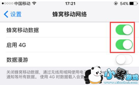 在打开的蜂窝移动网络中,将蜂窝移动数据打开,如果使用的是4G,也建议一起打开。