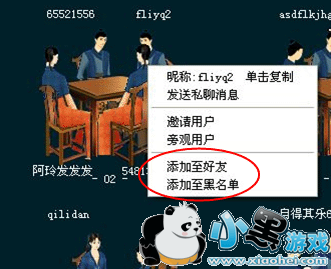 方法一:在用户列表里右键点击用户名,选择游戏好友或游戏黑名单(见下图)