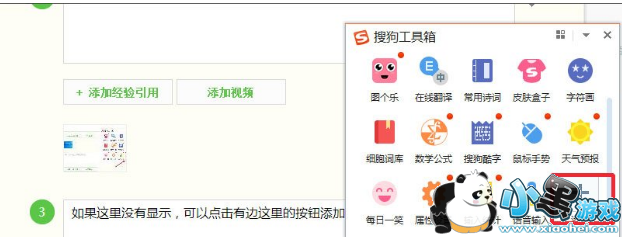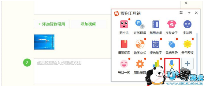 1、电脑正常连接麦克风以后就可以使用语音输入了,使用搜狗输入法,点击浮动条上的工具箱按钮;