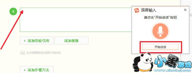 4、把光标放在需要输入文字的地方,然后点击开始说话;