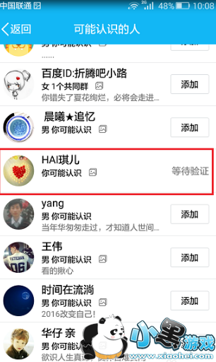 3、进去可能认识的人的界面之后,可以进行添加有哪些认识的人