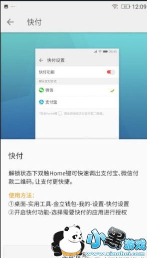 金立手机:解锁状态下,双击Home键可快速调出支付宝、微信付款码,可以设定默认微信或支付