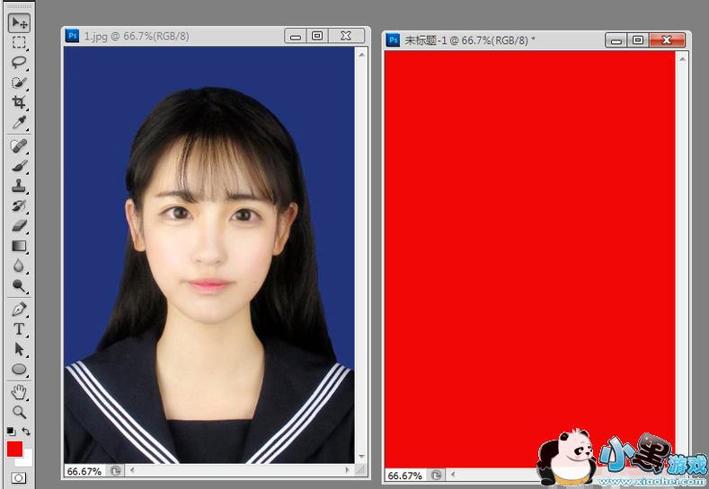 启动Photoshop cs5,导入一张人物照片,新建一个大小一样的文档。