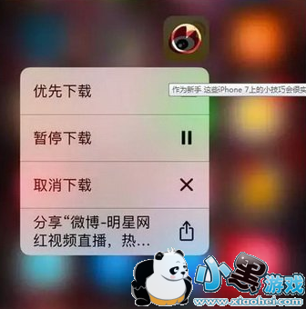 在iPhone7里面,你可以自己安排应用下载顺序啦!在正在下载、更新或恢复的应用图标上,使用3D Touch 轻按操作,屏幕上就会弹出一个快捷菜单,此时选择“优先下载”即可。