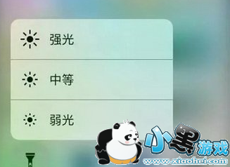 在iOS10中,手电筒还支持调节亮度功能,支持三个档次的选项:低强度、中等强度和高强度,通过3D Touch 压感操作就会出现相应的亮度调节菜单。
