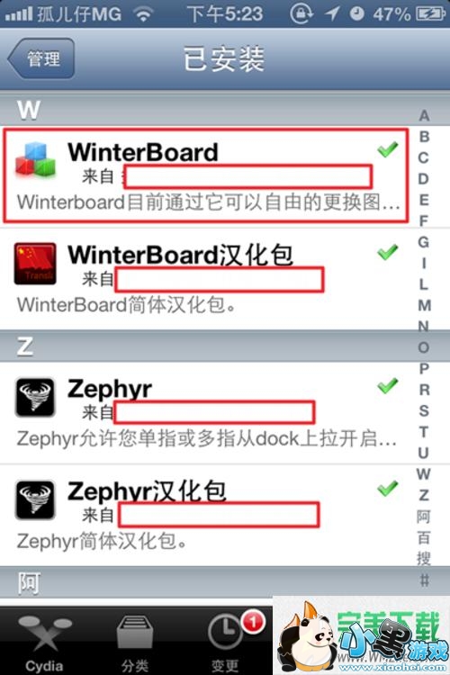 重启iOS设备,进入Cydia商店—管理—软件包,就能发现deb文件已经被安装到手机上了。
