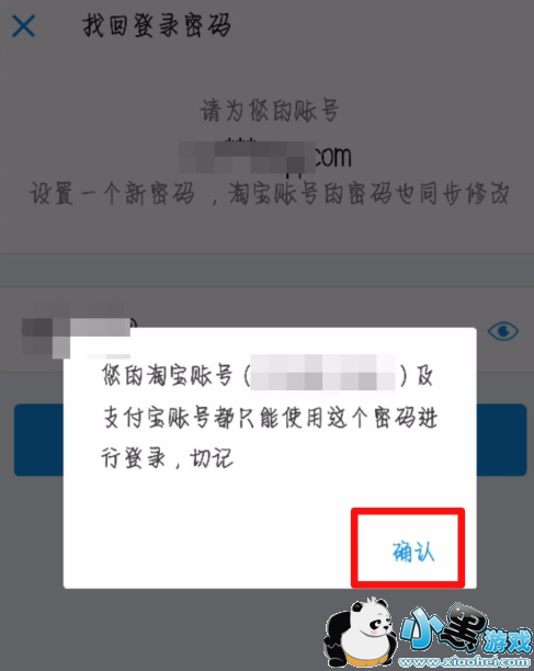 新密码保存成功,会弹出一个新窗口,如果支付宝账号绑定了淘宝,那么也会一起修改密码,以后就可以使用新密码登录了,确认无误之后,点击【确认】就可以。