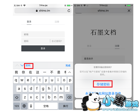 在Safari浏览器中,打开需要注册的网站界面,输入信息之后,点击键盘上的【密码】-【储存此密码】,注册完成账号的密码就可以储存在手机里。