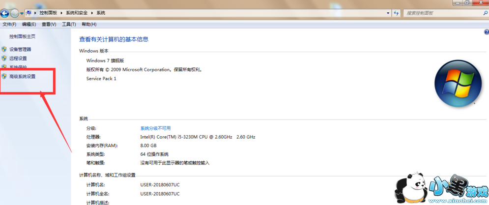 在左侧位置找到高级系统设置,点击打开,如图,