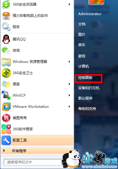 在桌面上点击开始栏,找到控制面板,点击打开,如图,