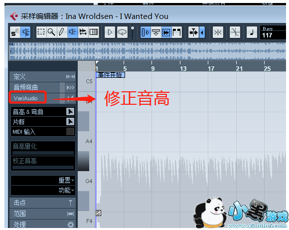 然后在采样编辑器的右侧点击“VariAudio”功能,将其展开,如图,