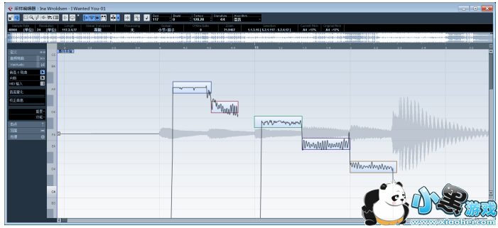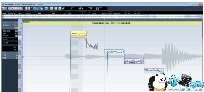 点击“VariAudio”项目下的“音高/弯曲”按钮,将会扫描音频波形,并以方块和线条的形式显示出来,