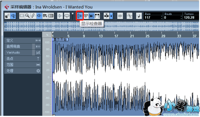 打开Cubase软件,导入一份音频文件,双击音频进入采样编辑器,如图,