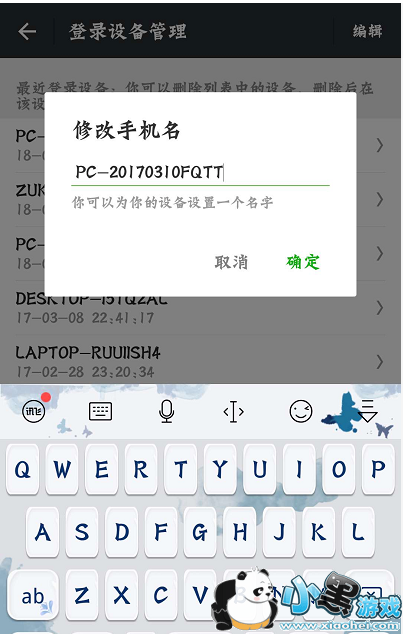 如果你对一些登录过的设备表示信任,你可以修改设备名称。单击设备名称,会弹出【修改手机名】的窗口,修改你熟悉的名字即可。