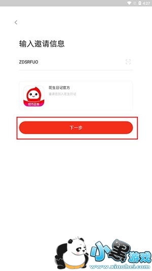 2、输入邀请信息,将邀请码【ZDSRFUO】填入,点击下一步。