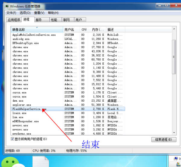 结束进程之后再删除FlashHelperService.exe