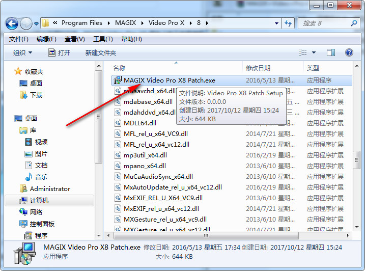 3.将MAGIX+Video+Pro+X8+汉化补丁.rar解压后得到MAGIX Video Pro X8 Patch.exe复制到安装目录下