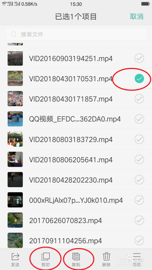 找到你要发的视频选择后点复制或者剪切,建议点复制哦