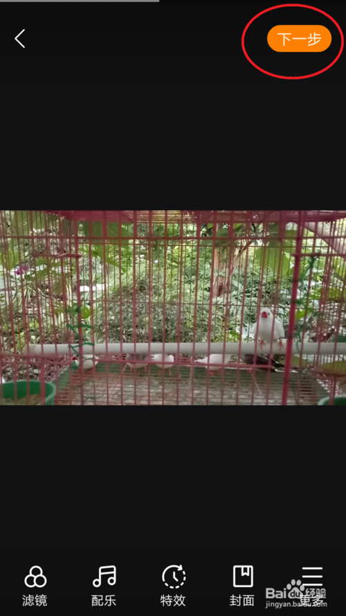 就进入了视频编辑页面,进行你的个性编辑,很得意吧,编辑完成后别忘了点“下一步”