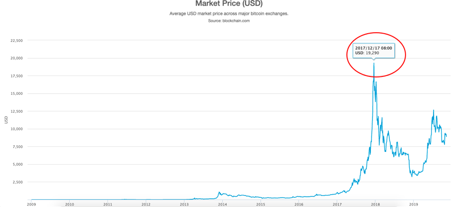 (2017年12月17日,比特币价格达到历史最高点19,290 USD)