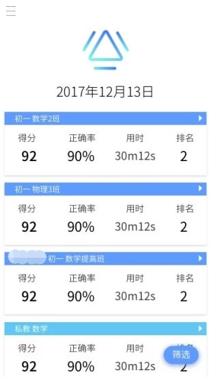 下面的“近7天的得分”折线图,蓝线代表该学生成绩在近7天的趋势,灰线则代表该学生所处的班级近7天平均成绩趋势,由此提出相应的评价建议。能一目了然看到自己的学习趋势,及时调整学习状态。