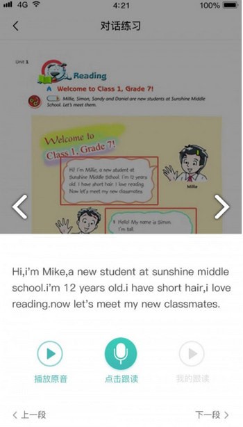 3.手机变身点读机,听课文、学单词,哪里不会点哪里,soeasy!更有边听边翻译,打造专业双语环境。